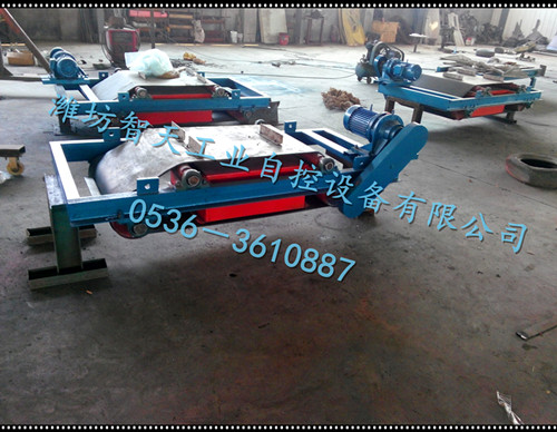RCYD(C)系列永磁自卸式除鐵器是由高性能永磁磁芯、棄鐵皮帶、減速電機、框架、滾筒等部分組成,與各種輸送機配套使用。用于從非磁性物料中自動清除0.1—35公斤重的鐵磁性物質。其內部磁路采用計算機模擬設計、完善的雙磁極結構,保障整機在惡劣環境中無故障長期運行。